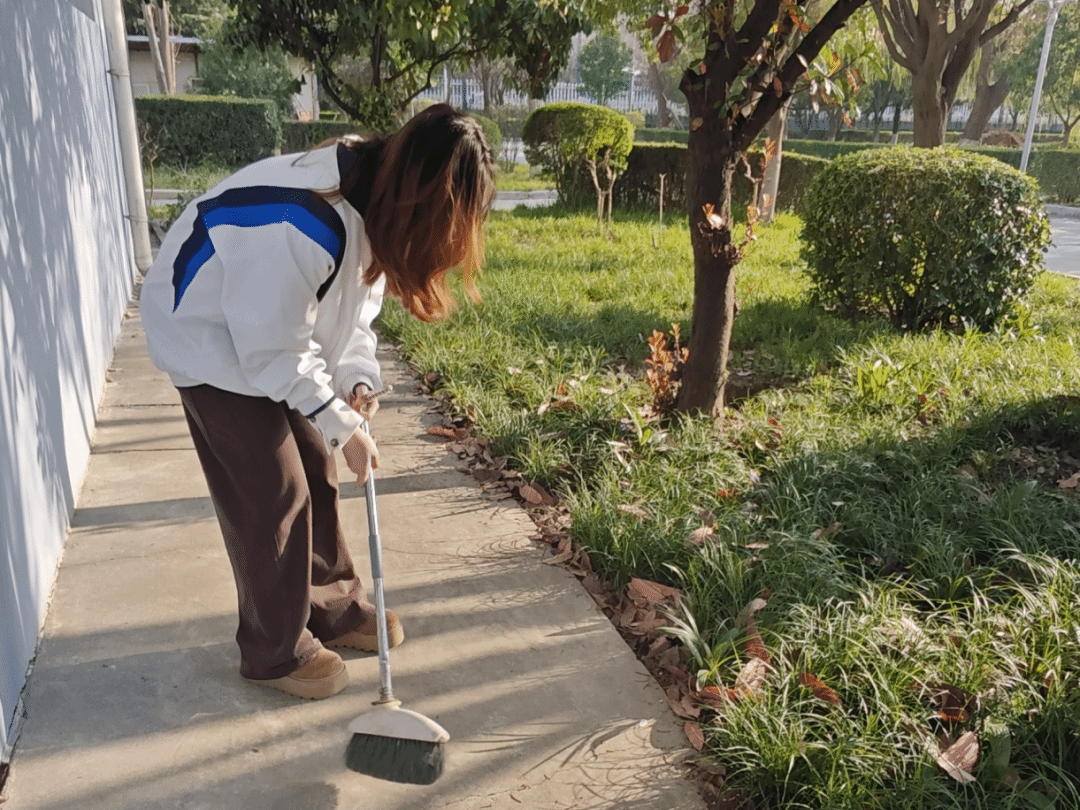 与此同时,党员同志们分组前往图书馆、实验楼周边,重点攻坚卫生盲区,弯腰捡拾角落纸屑杂物,细致清理每一处积存垃圾,让校园公共环境更整洁美观。此外,大家主动擦拭校园宣传栏,清理表面灰尘与污渍,确保宣传内容清晰醒目、持续传递正能量;随后前往学校西门口,将乱停乱放的共享单车逐一摆放整齐,规范校园出入口停放秩序,既保障师生通行顺畅,也展现出文明校园的良好风貌。