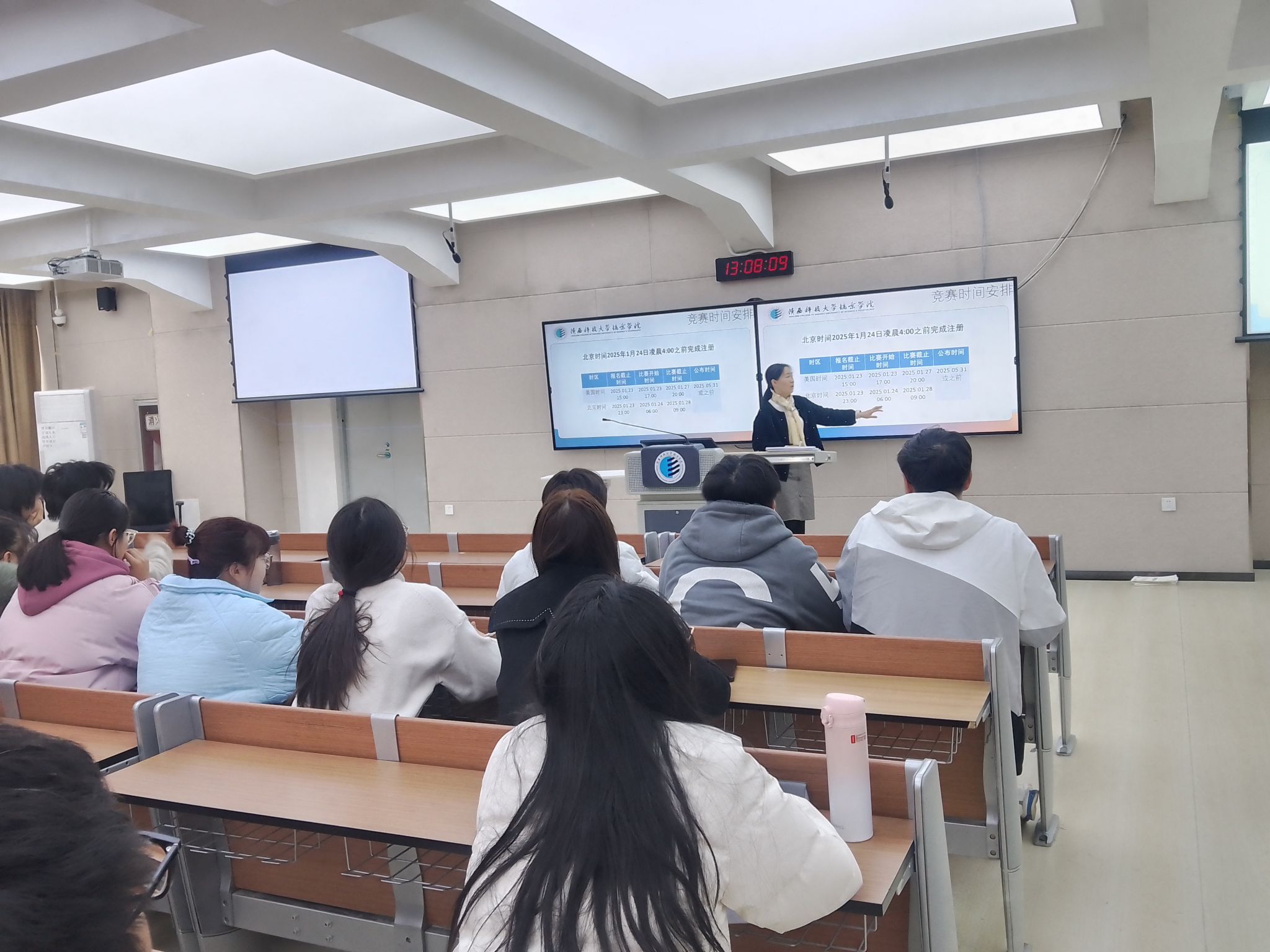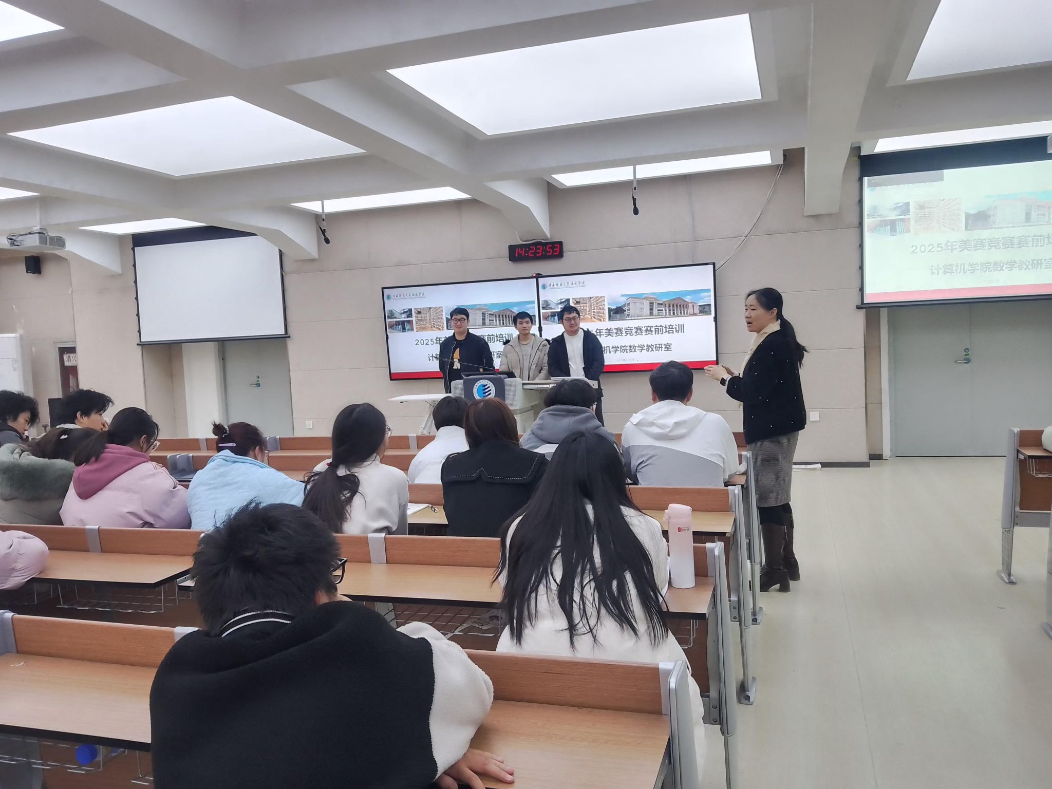 为了不断强化我校学子在数学建模领域的技能与团队协作能力,深入了解美国大学生数学建模竞赛(MCM/ICM,简称美赛),计算机学院数学教研室于1月7日下午在教学楼114教室举办了美国大学生数学建模竞赛的专题讲座。本次讲座邀请到了计算机学院副院长吕纪荣担任主讲,还邀请到了2024年首次参加此项赛事即获H奖的学生代表王肖潼、何金虹、王涛,参加讲座的还有今年有意愿参加美赛的所有同学,共计50余名师生。讲座由数学教研室主任曹西娟主持。