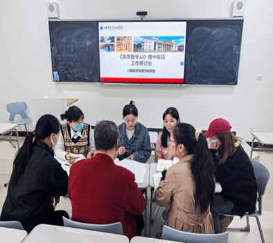 为及时总结前半学期教学经验,精准把脉学生学习情况,进一步提升教学质量,计算机学院数学教研室于2025年10月16日在教学楼406教室组织召开《高等数学AI》期中阶段教学工作研讨会。会议由课程组负责人李馨老师主持,任课教师全员参加。教师齐聚一堂,就当前学生学情以及期中考试相关内容等进行了深入研讨与交流。研讨会重点就以下两个议题进行了探讨,形成统一意见