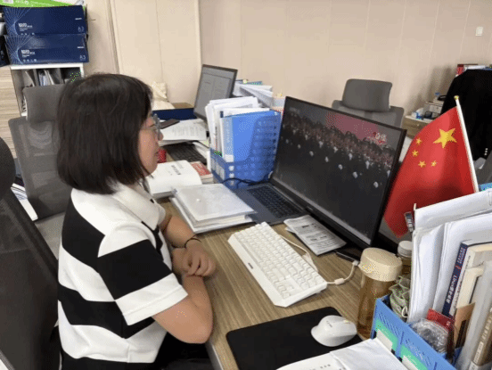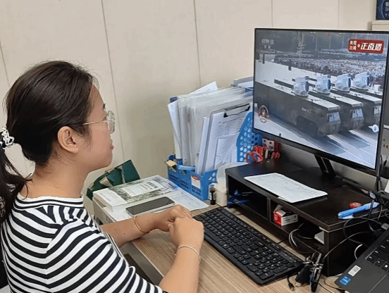 观看结束后,师生们围绕阅兵场景展开热烈讨论。23级计算机科学与技术专业学生张运成说:“从抗战时期的艰难抗争到现在的强大国防,装备在升级,但爱国的精神从未改变。作为计算机专业学生,我要学好编程和网络技术,将来为国家的科技发展添砖加瓦。”计算机学院辅导员张宇纪老师感慨道:“看着屏幕里整齐的受阅方阵和先进装备,我更深刻理解了‘强国有我’的意义。未来会通过更多主题班会,引导学生把爱国情转化为学习动力,让红色精神融入日常。” 计算机学院系主任蔡静老师则结合专业教学谈到:“阅兵中的信息化装备离不开计算机技术支撑,这为我们的教学指明了方向 —— 要在课堂上融入家国情怀教育,让学生知道所学技术能为国家做什么,激发他们的专业使命感。”