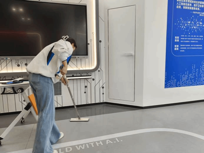 活动当天,学生党员们热情高涨、分工协作,全身心投入主题党日实践,聚焦校园重点区域开展清洁整治,用责任与担当擦亮文明校园底色。在教学楼区域,党员同志们有条不紊开展清洁工作,专注擦拭扶梯及各类公共设施,细致清理灰尘污渍、不放过任何卫生死角,让教学楼公共区域焕然一新;同时深入AI灵犀智创中心,认真清扫地面、整理并细致归置各类杂物,为师生营造整洁有序的科研学习环境。