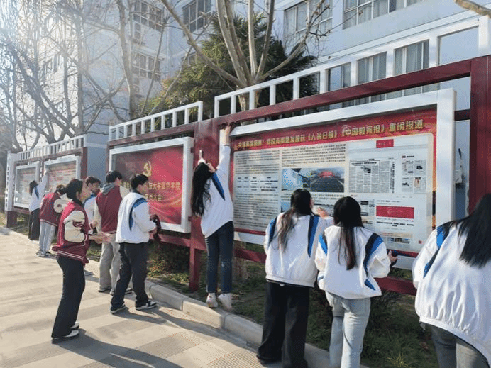与此同时,党员同志们分组前往图书馆、实验楼周边,重点攻坚卫生盲区,弯腰捡拾角落纸屑杂物,细致清理每一处积存垃圾,让校园公共环境更整洁美观。此外,大家主动擦拭校园宣传栏,清理表面灰尘与污渍,确保宣传内容清晰醒目、持续传递正能量;随后前往学校西门口,将乱停乱放的共享单车逐一摆放整齐,规范校园出入口停放秩序,既保障师生通行顺畅,也展现出文明校园的良好风貌。